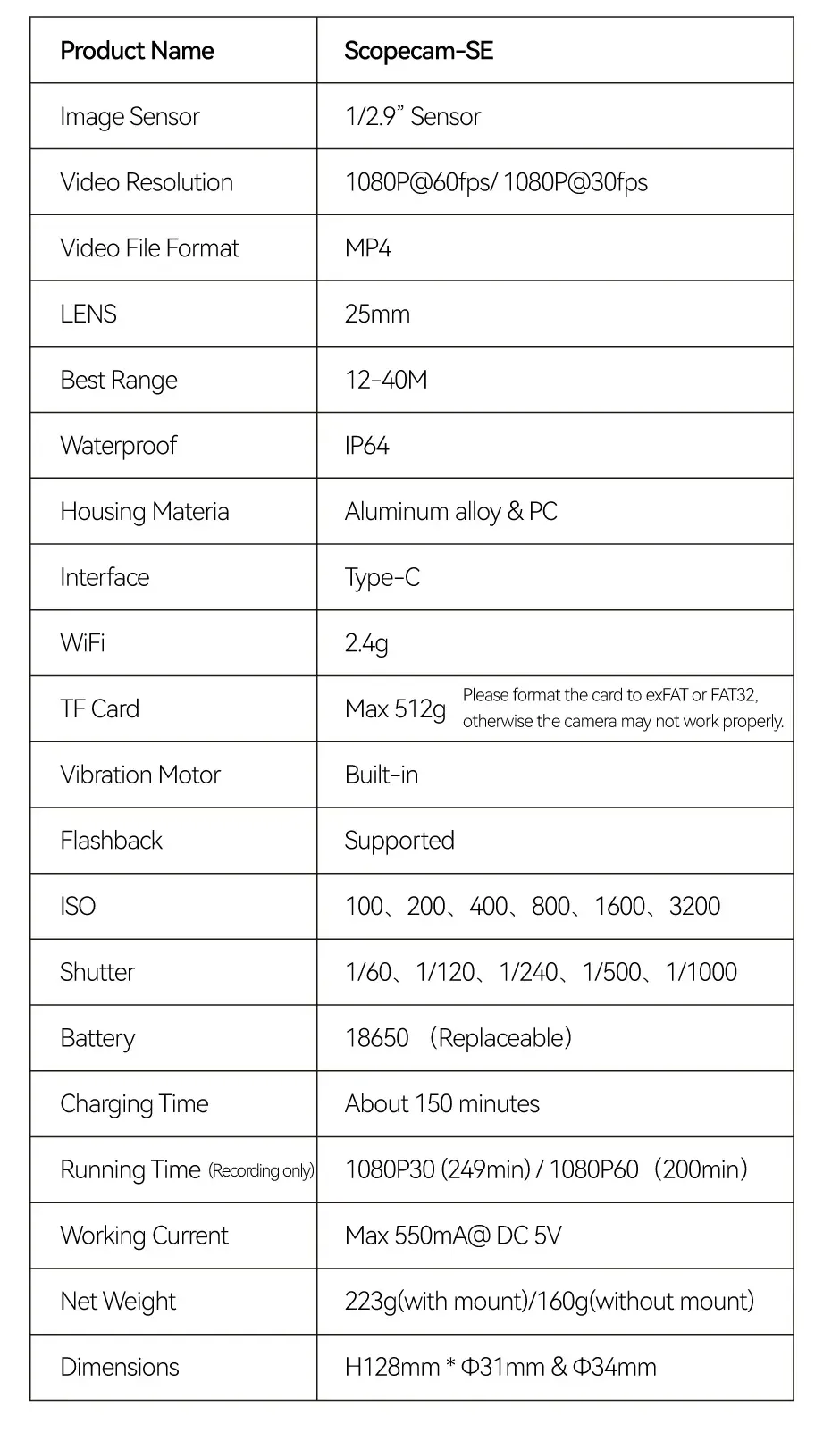 RunCam ScopeCam SE HD 1080P Recording IP64 WaterProof Flashback Supported Battery Replaceable Camera
