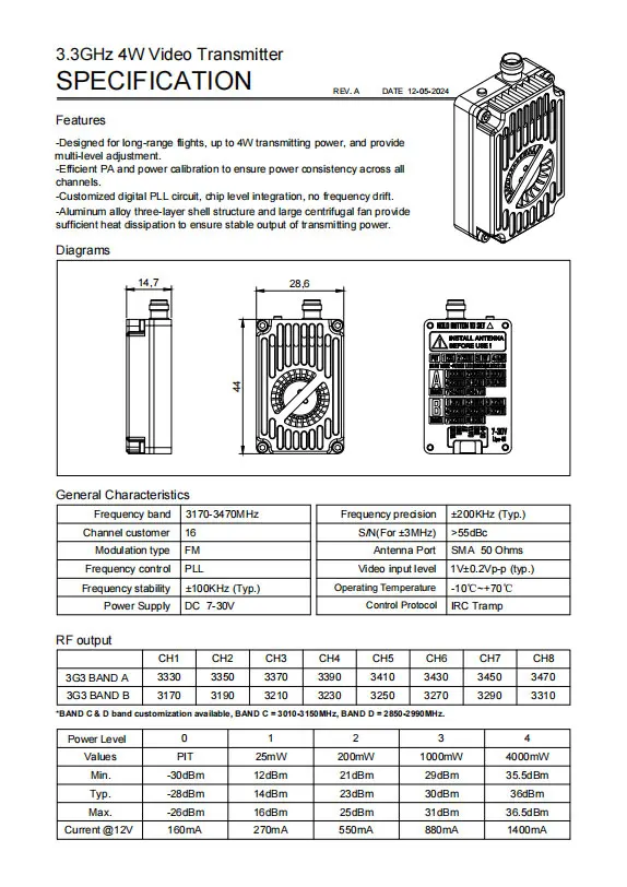 3.3GHz 4W Video Transmitter