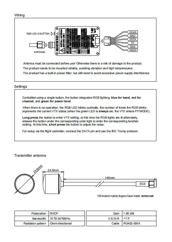 -Designed for long-range fights, up to 4W transmitting power,and provide multi-level adjustment.