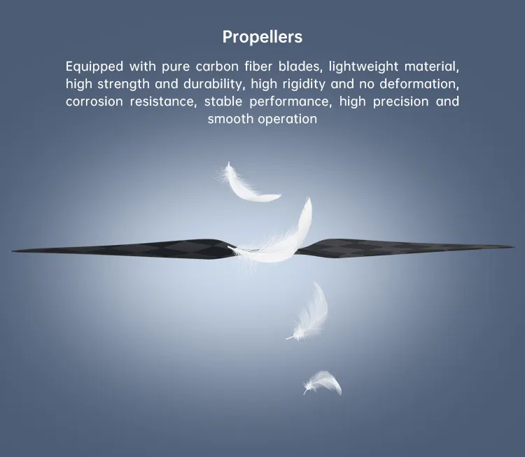Equipped with pure carbon fiber blades, lightweight material, high strength and durability, high rigidity and no deformation,