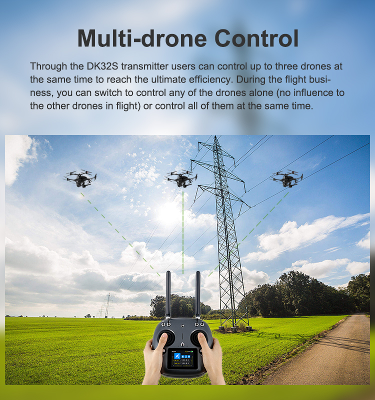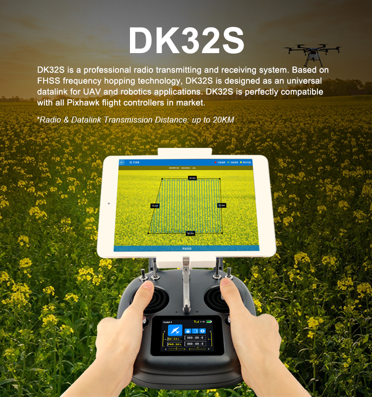The agricultural plant protection operation distance of DK32S is 4-5km (ground-to-ground) and 2-3KM for DK32.
