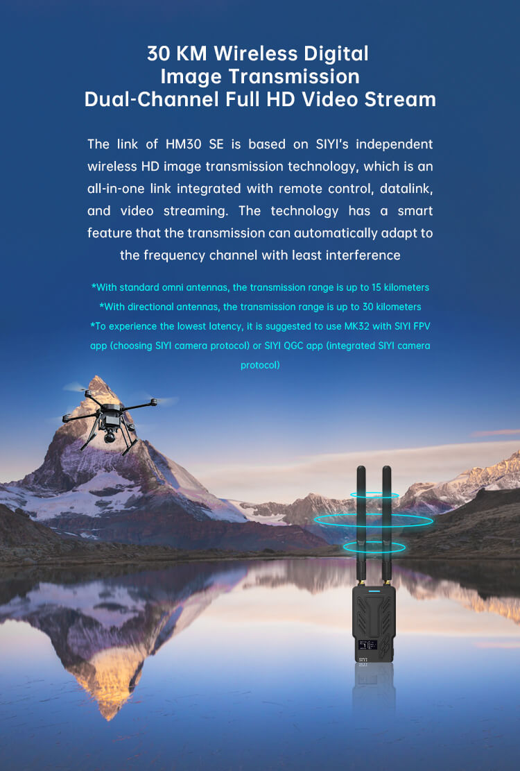 SIYI HM30 SE Long Range Full HD Digital Image Transmission FPV System 1080p 60fps 150ms SBUS PWM Mavlink Telemetry OSD 30KM FCC