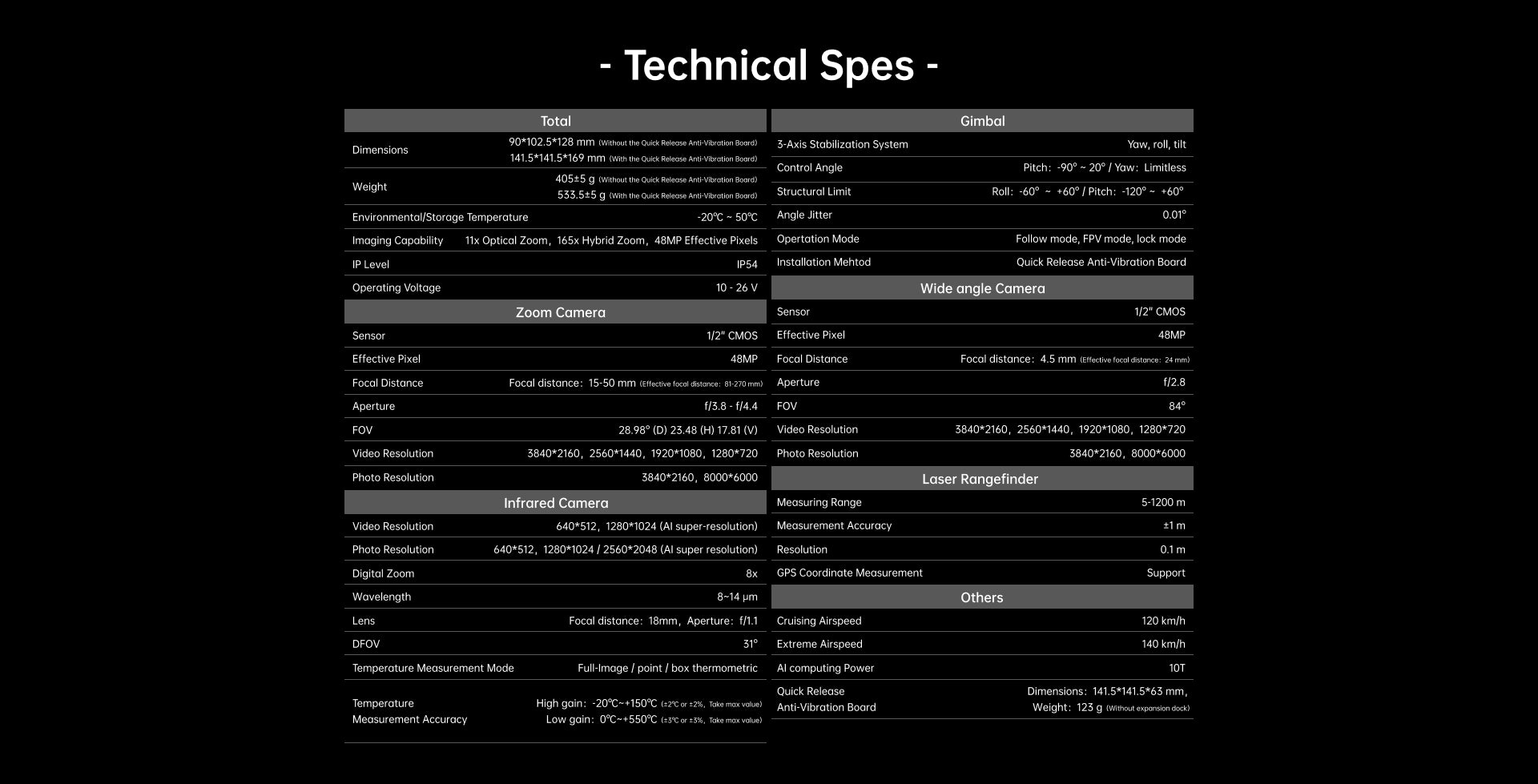 141.5 × 141.5 × 169 mm (Without Quick Release Anti-Vibration Board)