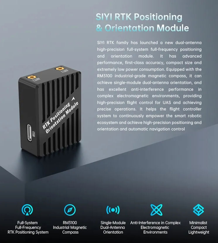 SIYI RTK Positioning and Orientation Module with RM3100 Industrial Magnetic Compass Single-Module Dual-Antenna Orientation