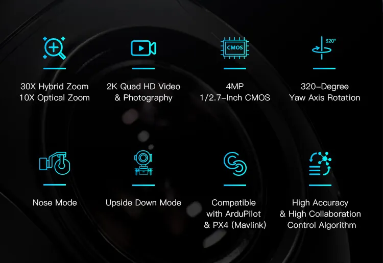 SIYI ZR10 2K 4MP QHD 30X Hybrid 10X Optical Zoom Gimbal Camera 1/2.7" CMOS HDR Starlight Night Vision 3-Axis Stabilizer UAV UGV USV Pod Payload for Drone Surveillance Inspection