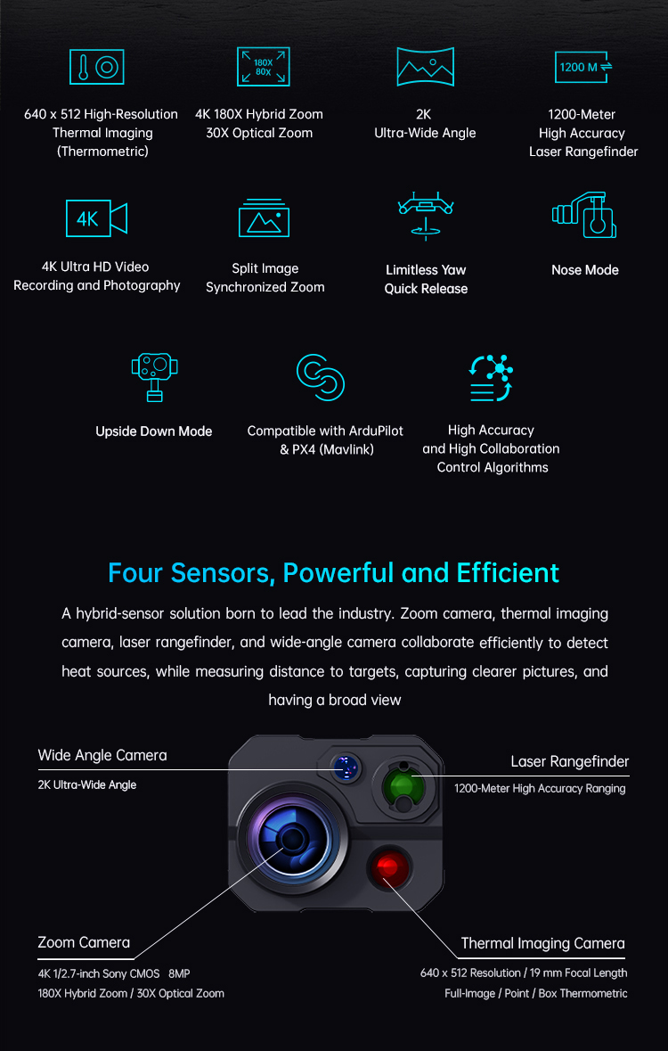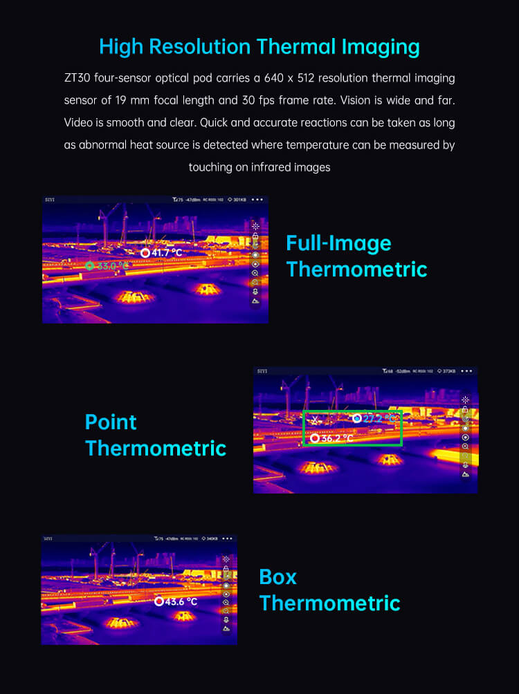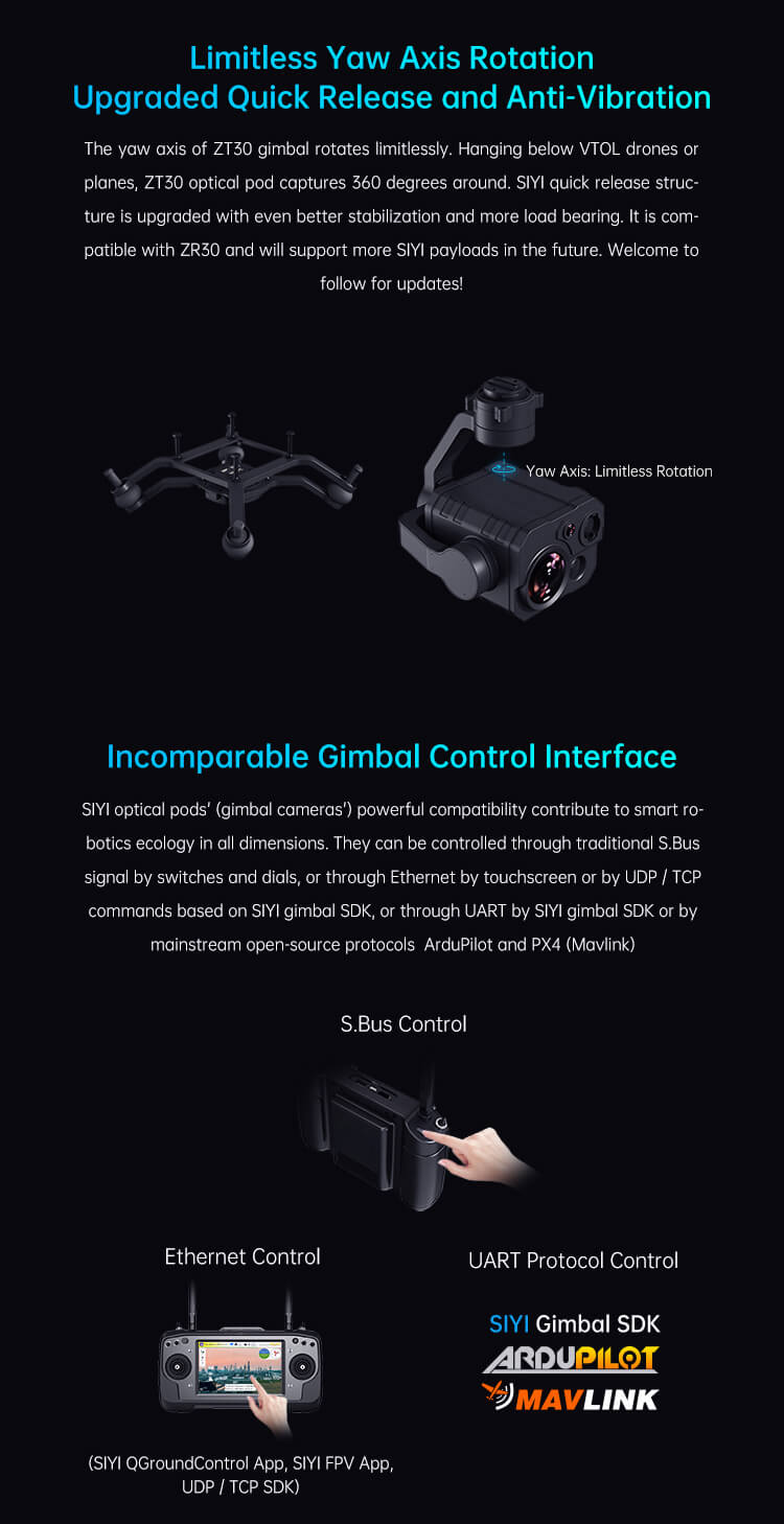 SIYI ZT30 Optical Pod Four Sensors 4K 8MP 180X Hybrid 30X Optical Zoom Gimbal Camera 640 x 512 Thermal Imaging High Accuracy Laser Rangefinder 2K Wide Angle 3-Axis Stabilizer UAV UGV USV Pod Payload Surveying machines and instruments