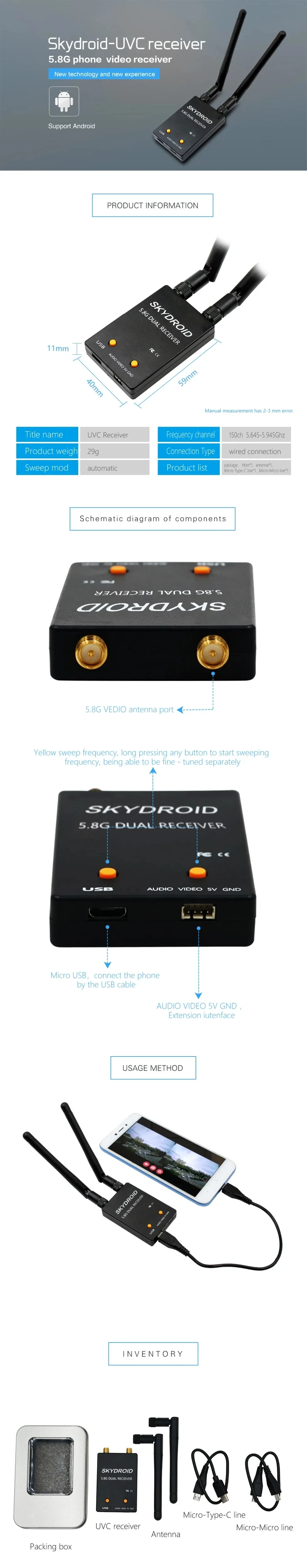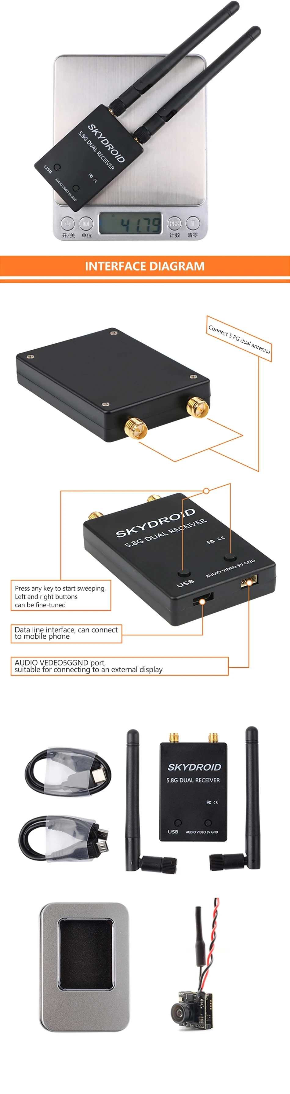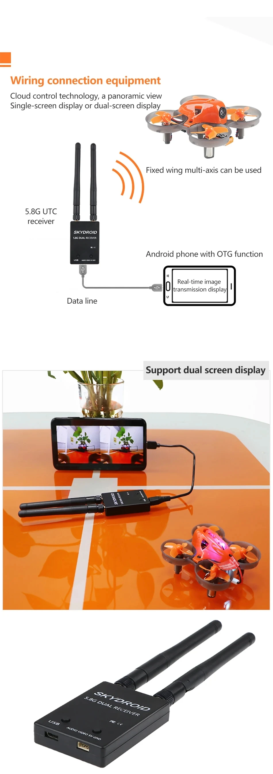 2. Single Antenna FPV receiver for Android Tablet PC Monitor.