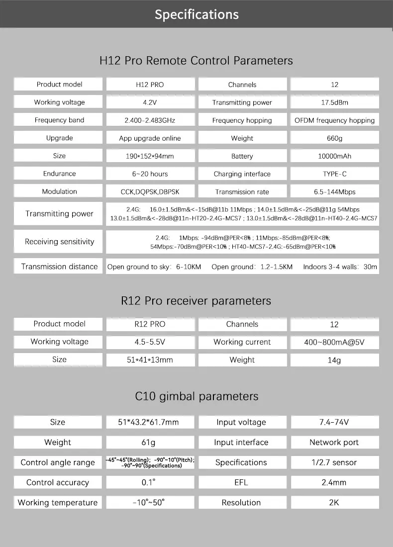 Low Power Consumption and Long Endurance: Designed for efficient energy use, the H12 Pro supports QC fast charging, ensuring longer flight endurance and quick charging capabilities.