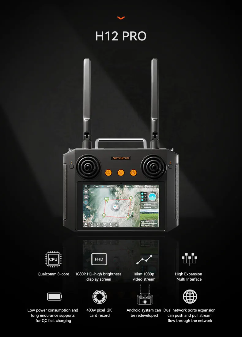 Advanced CPU Performance: Equipped with a Qualcomm 8-core CPU, the H12 Pro delivers exceptional performance, supporting smooth decoding of H.264/H.265, 1080P video streams and seamless operation of various ground station software.