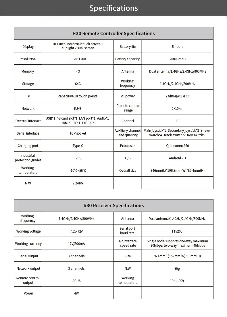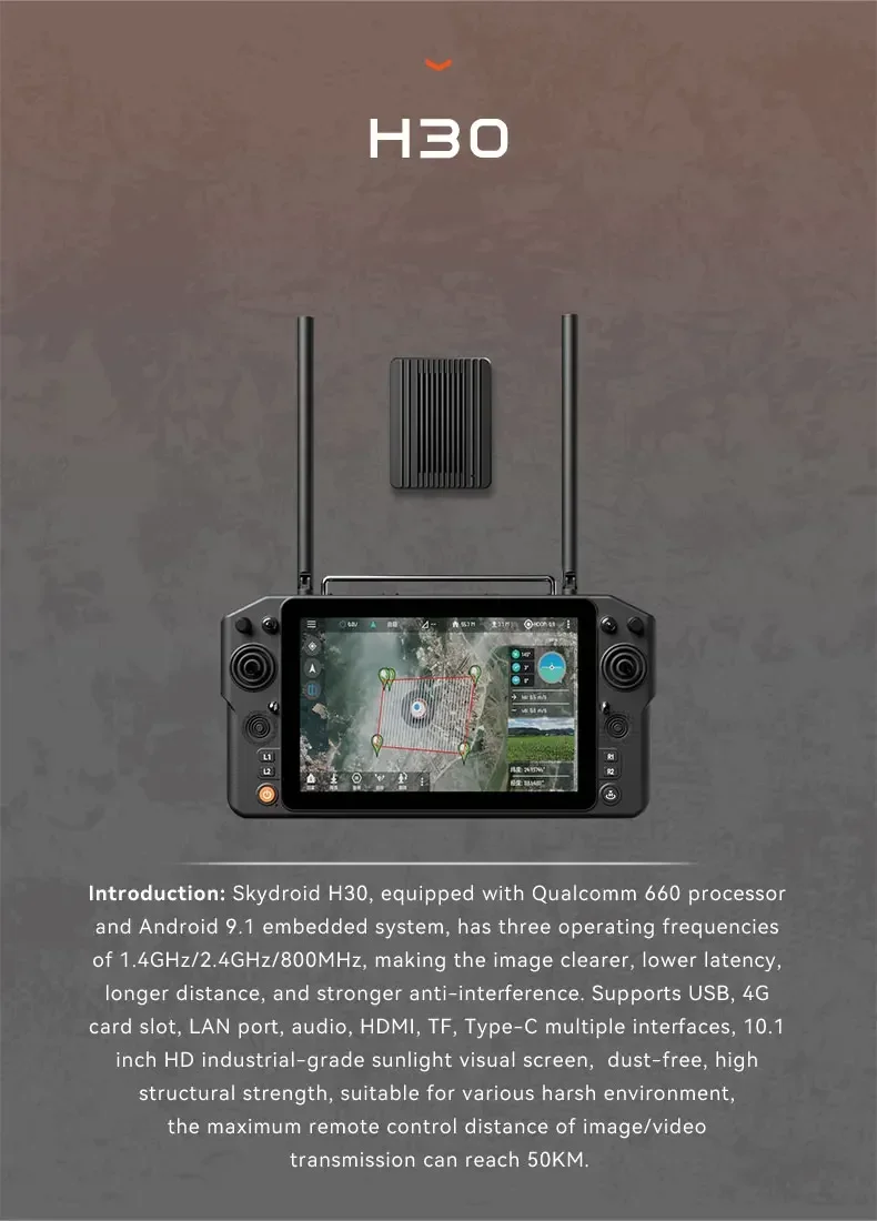 Powerful Processor and Operating System: Equipped with the latest Qualcomm Snapdragon 660 8-core processor and an Android 9.1 (64-bit) embedded system, the H30 delivers smooth and powerful performance, capable of running 3D maps and various ground station software.
