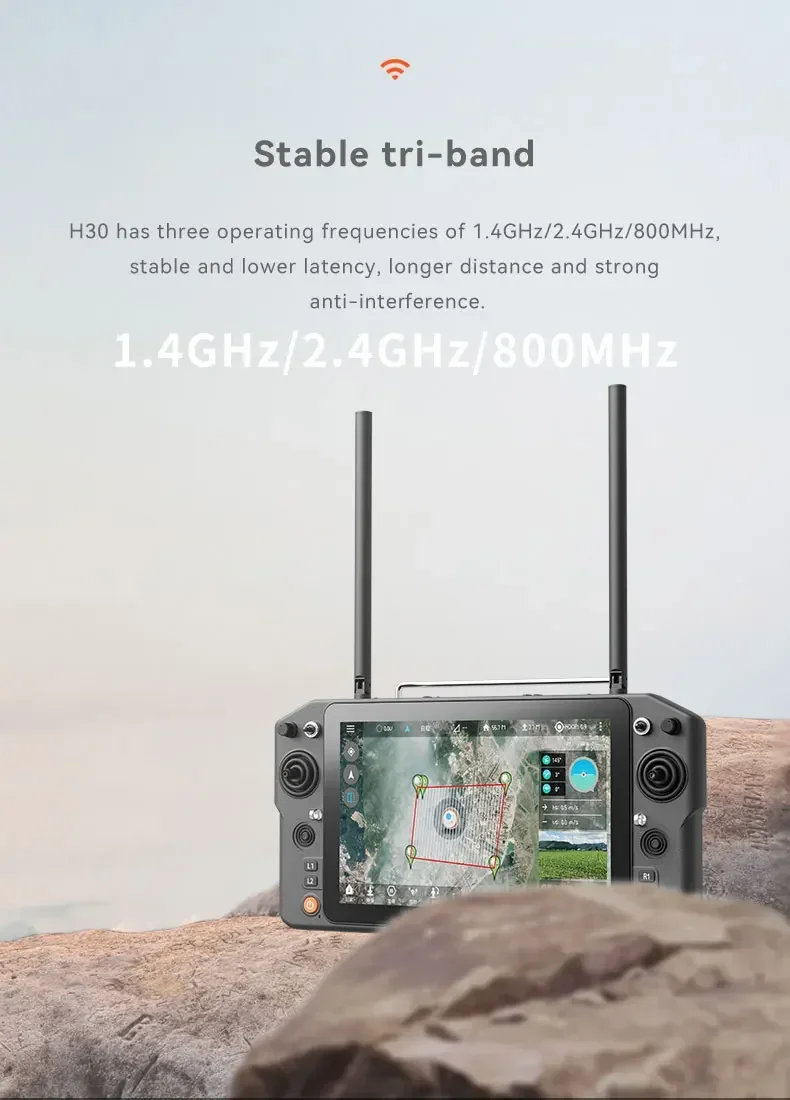 Multi-Band Frequency Support: The H30 operates on three frequencies: 800MHz (806-826MHz), 1.4GHz (1427-1467MHz), and 2.4GHz (2401.5-2481.5MHz), ensuring clear images, low latency, long transmission distances, and strong anti-interference capabilities.