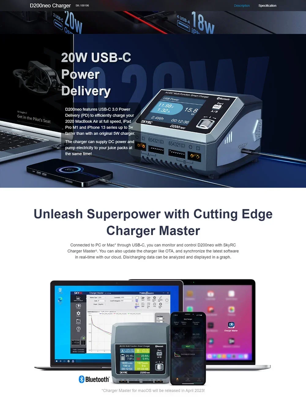 Charger power: AC: 200W MAX