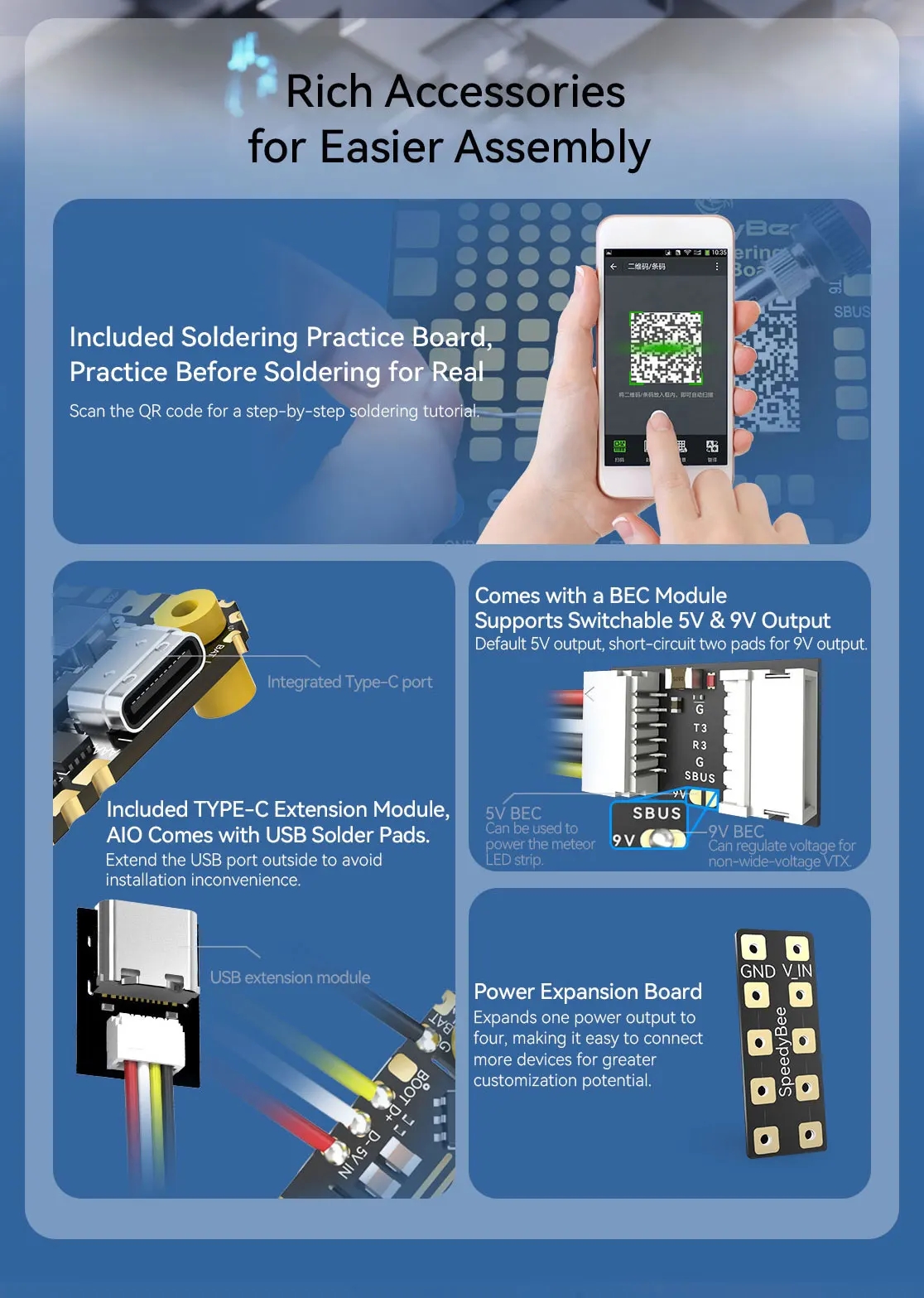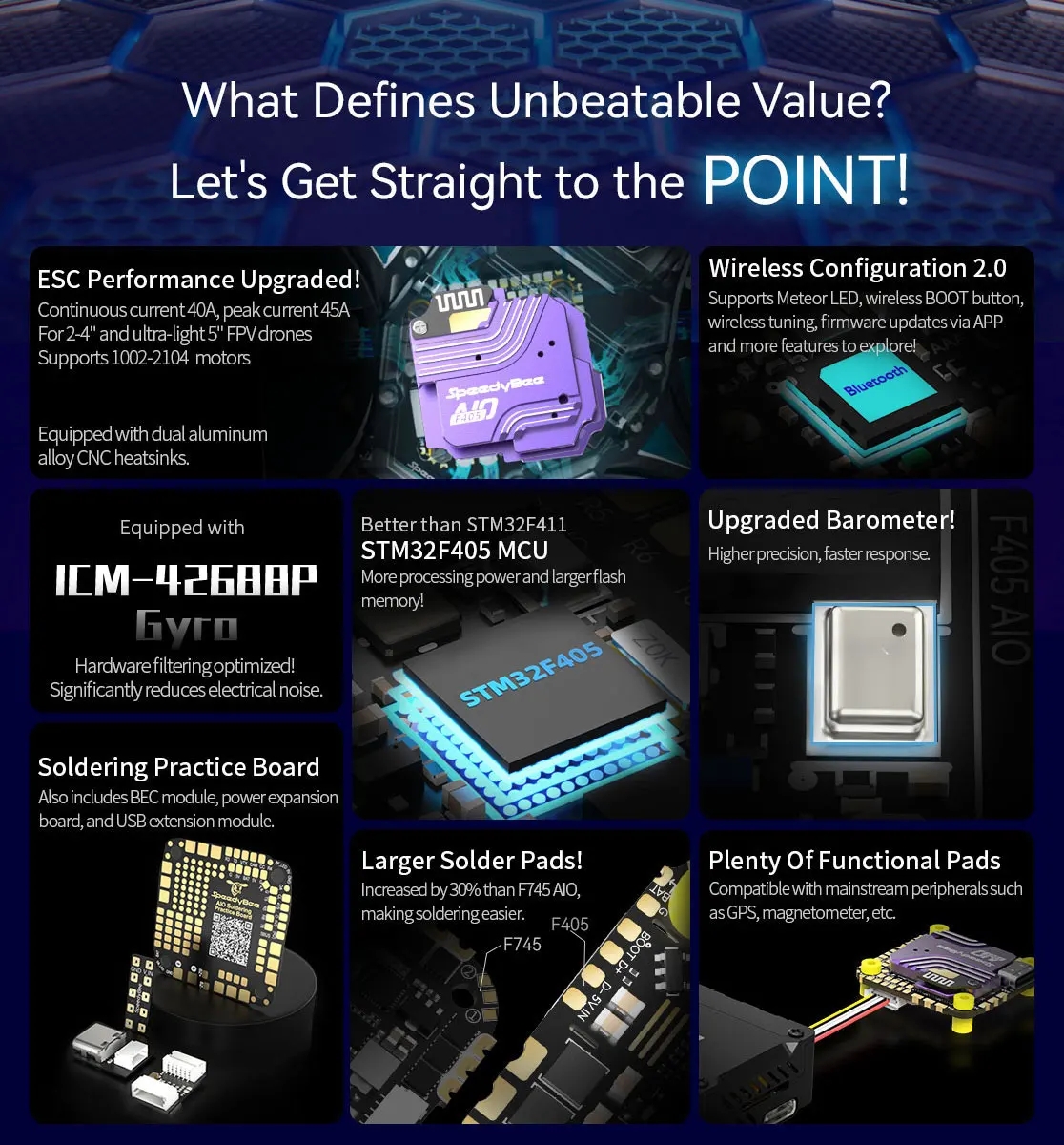 SpeedyBee F405 AIO has become the preferred flight controller among flying drone enthusiasts due to its high expandability, lightweight design, rich functions, easy installation and debugging, and reliable quality and performance. It's an option worth considering for both beginners and experienced players.