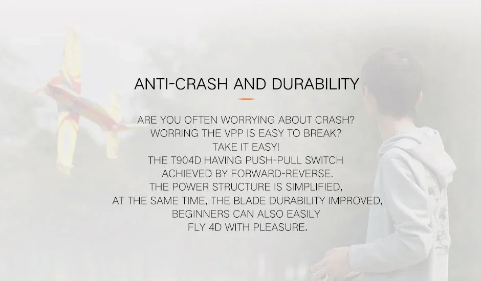 Experience next-level indoor 4D F3P flying with the T-HOBBY T904D plastic propeller set. Enjoy exceptional resilience, explosive power, and minimal vibration. Built for both beginners and enthusiasts, its push-pull switch simplifies flying and boosts durability. Available in Clear Gray or Clear Orange.