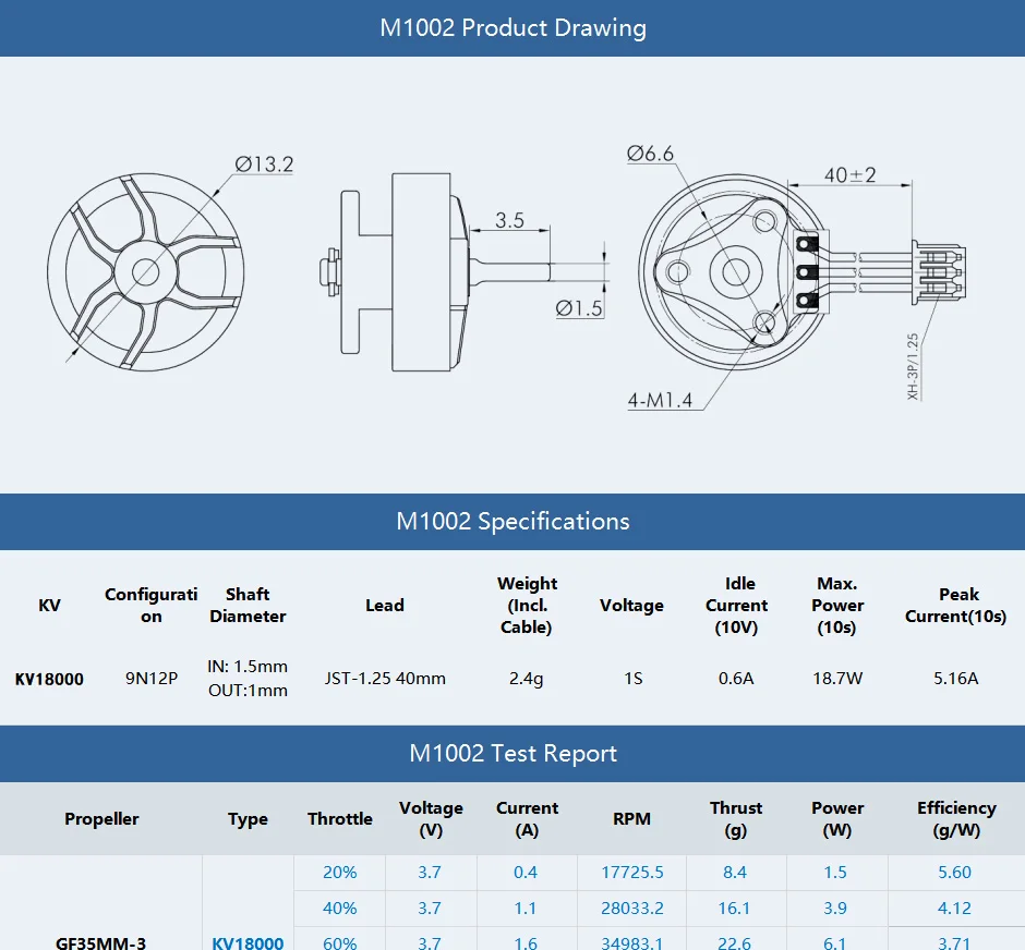 T-HOBBY M1002 KV18000 Micro 1S Brushless Motor Suitable for 75mm FPV Tinywhoop Racing Drone