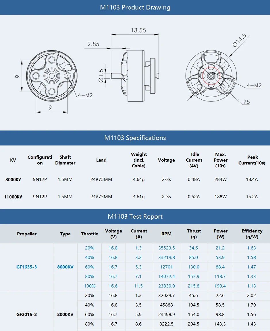 T-HOBBY M1103 Micro Motor KV8000 KV11000 Suitable For 1.6-2.5 inch Whoop 2-3 inch Toorhpick