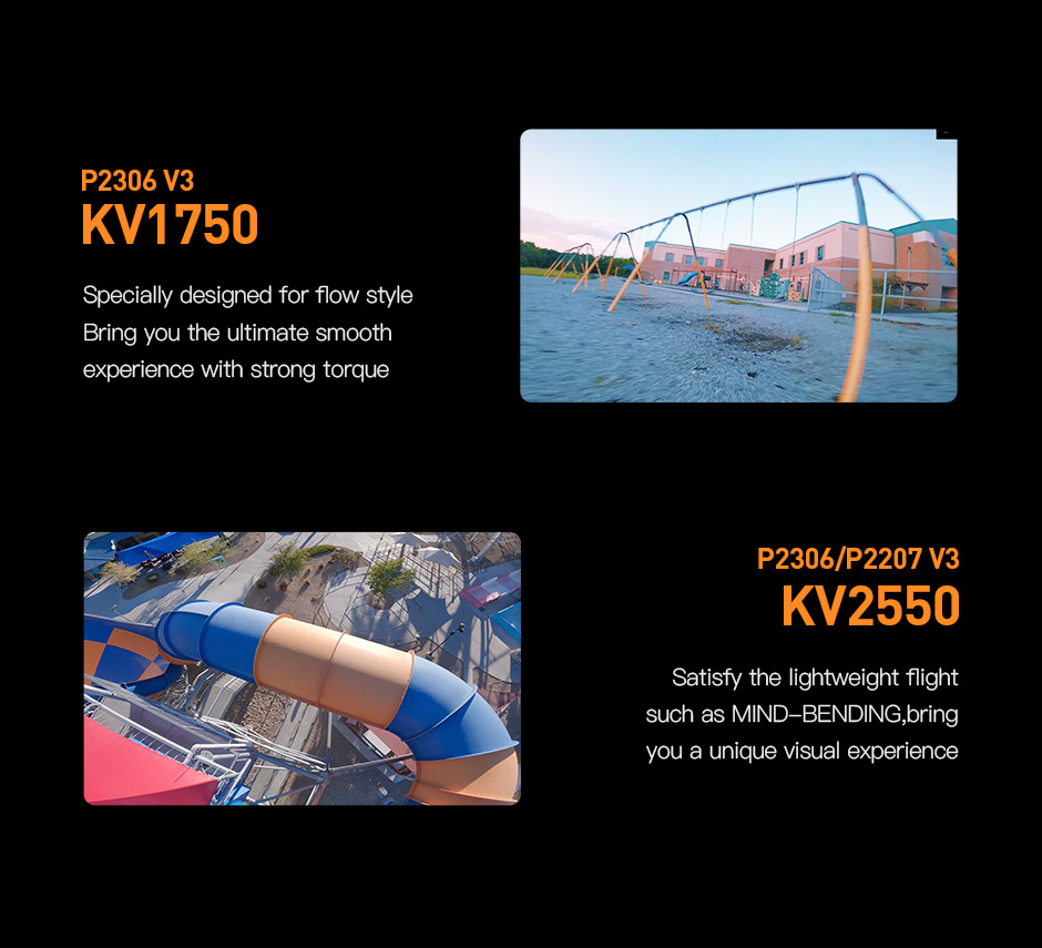 - The P2306 V3 brushless motor is tailored for 5" freestyle drones and comes in 3 different KV options to suit various flying styles.