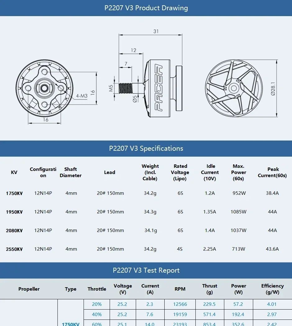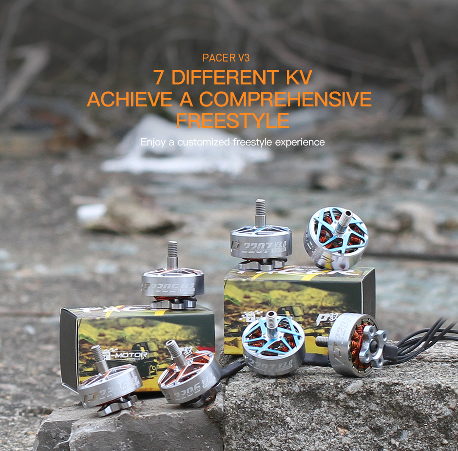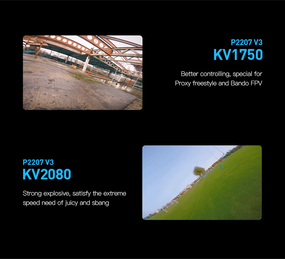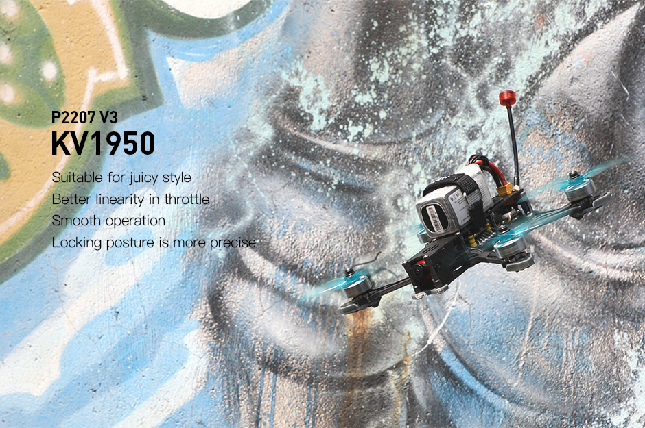 - The P2207 V3 brushless motor is tailored for 5" freestyle drones and comes in 4 different KV options to suit various flying styles.