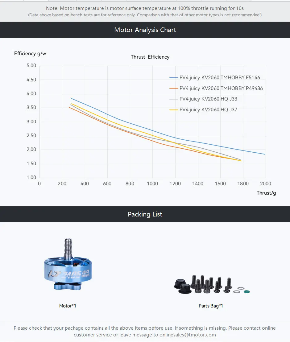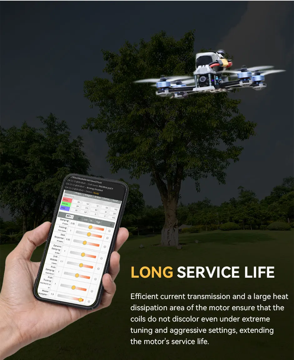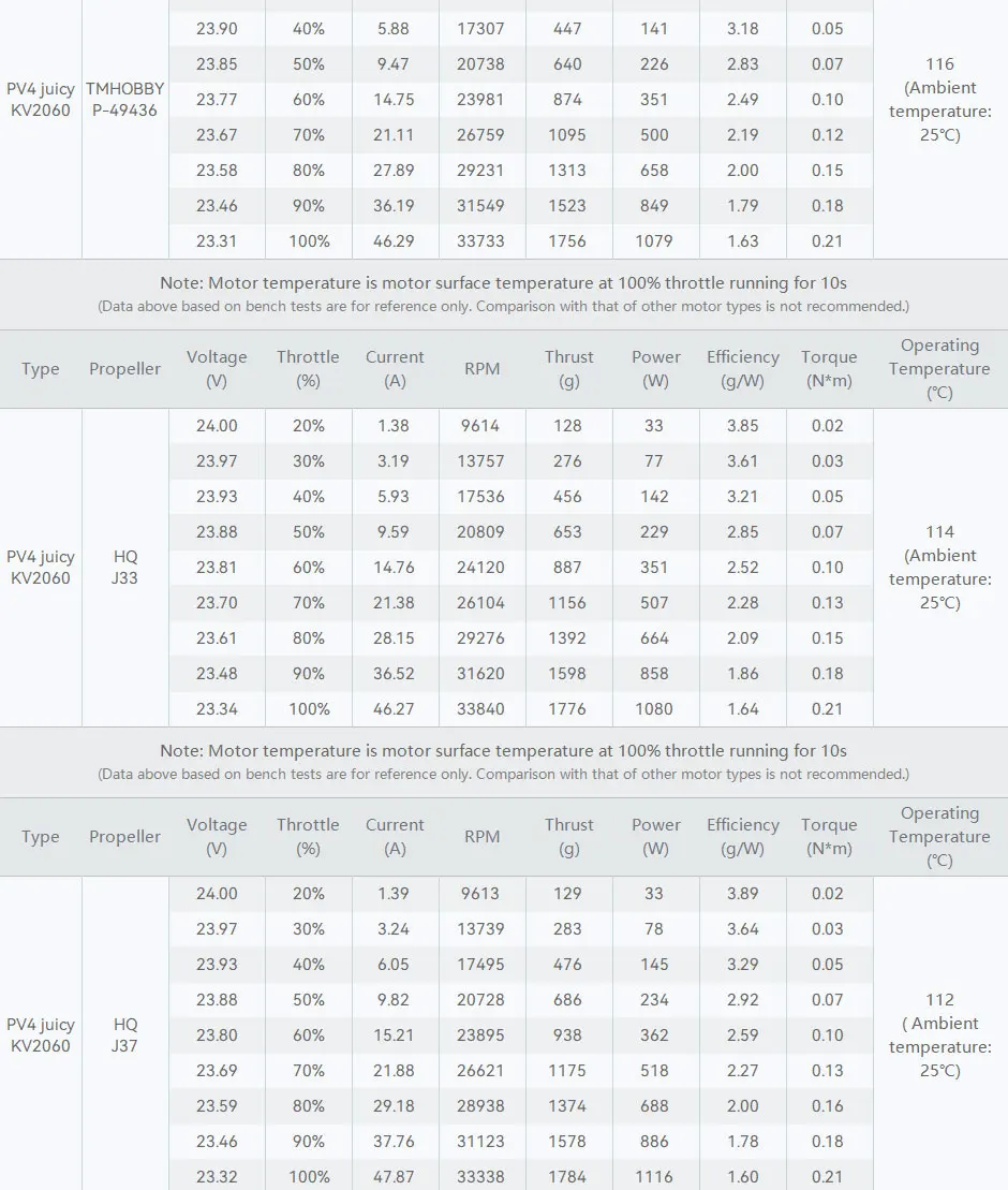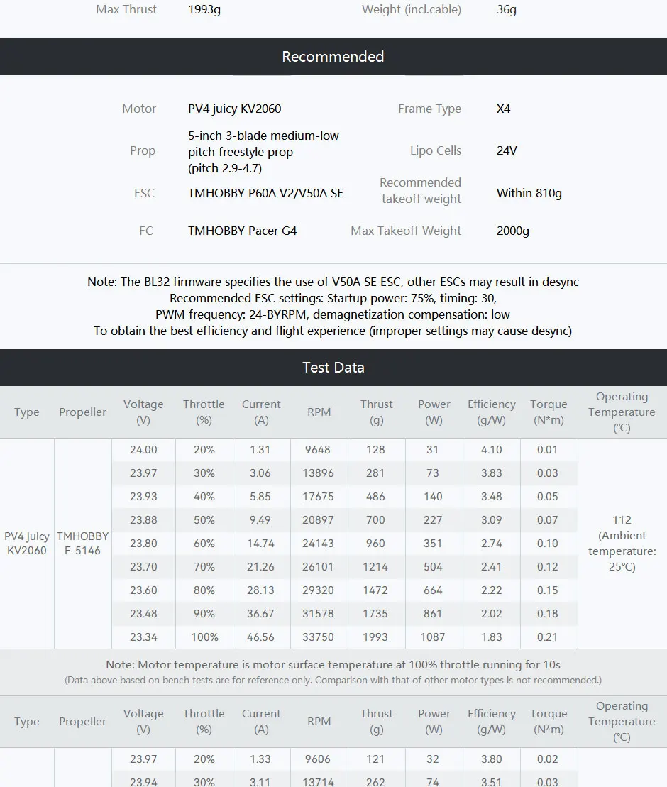 3.  High Thrust: Thrust more than 1.8kg combined with 5inch Prop Size at 100%