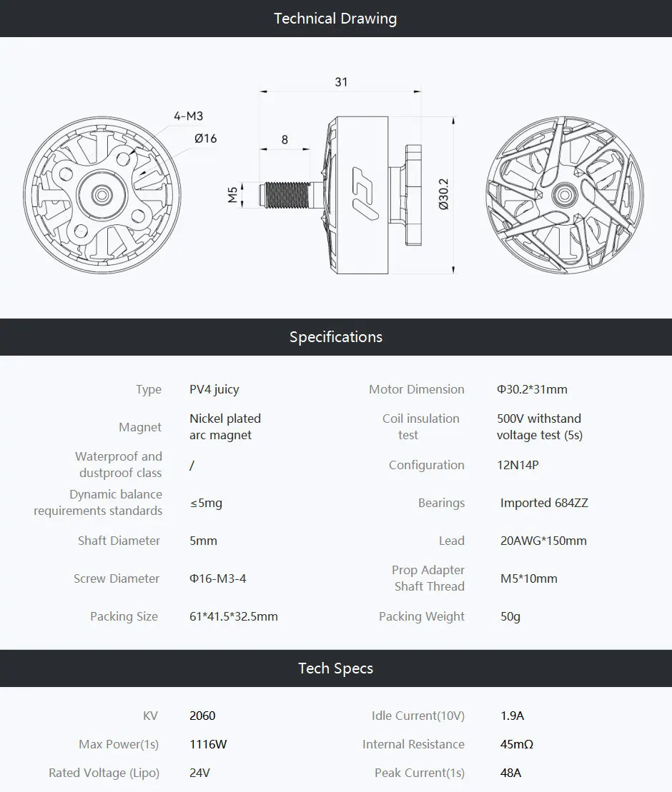 T-HOBBY Pacer V4 Juicy 2060KV Brushless Motor 5mm Shaft