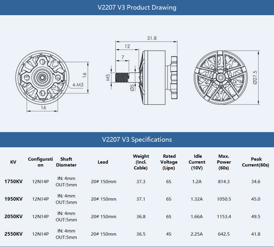 • 1x T-Motor Velox V2207 V3 Motor (Choose KV)
