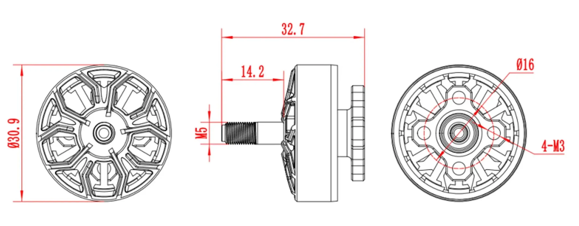 Mounting Hole Spacing: Φ16mm M3 x 4 holes