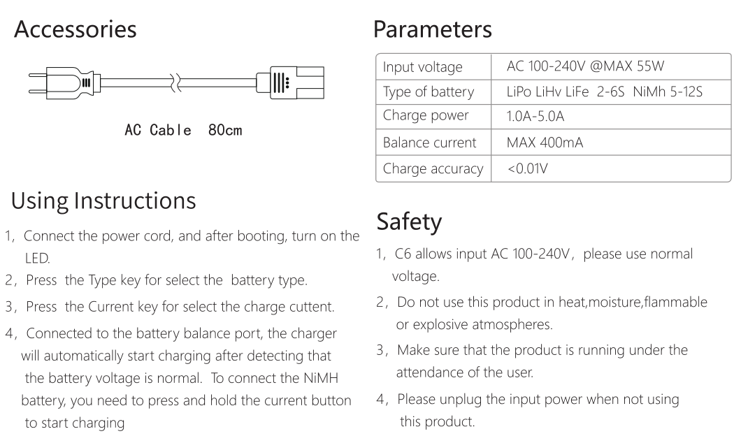 BATTERY TYPE: LiPo LiHV LiFe 1~6S, NiMH 5~12S
