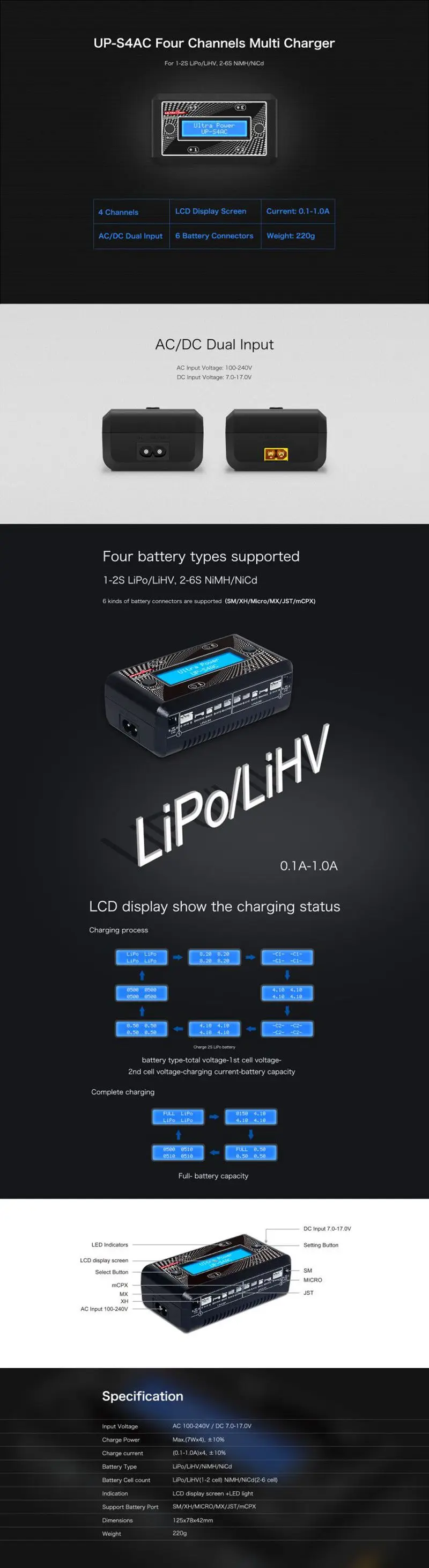 Support Battery Port: SM/XH/Micro/MX/JST/mCPX