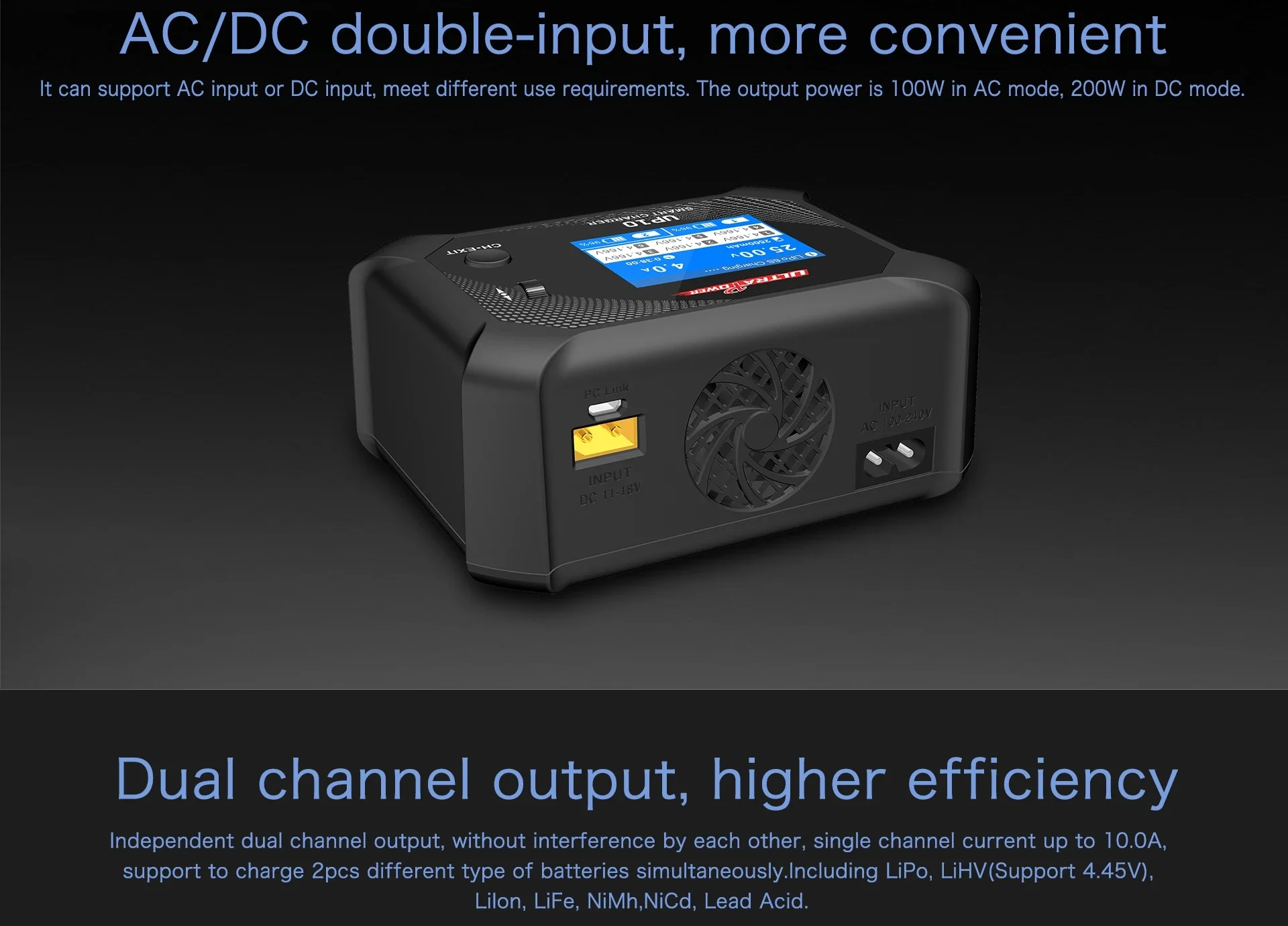 ULTRA POWER UP10 200W dual channel intelligent balance charger 4S2S6S lithium battery charger