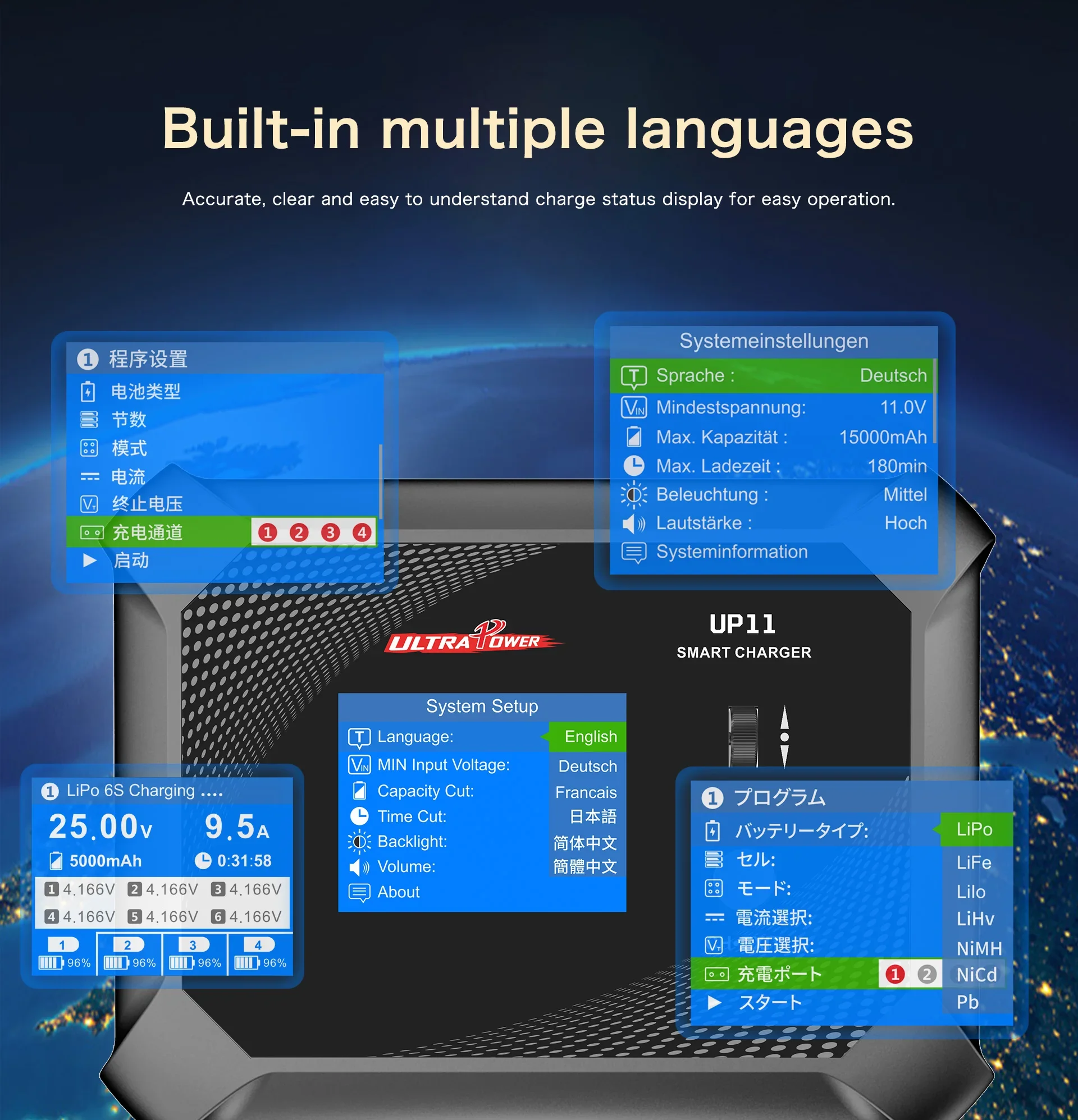 ULTRA POWER UP11 Battery Charger AC 240W DC 600W Four Channels Smart Blance Charger