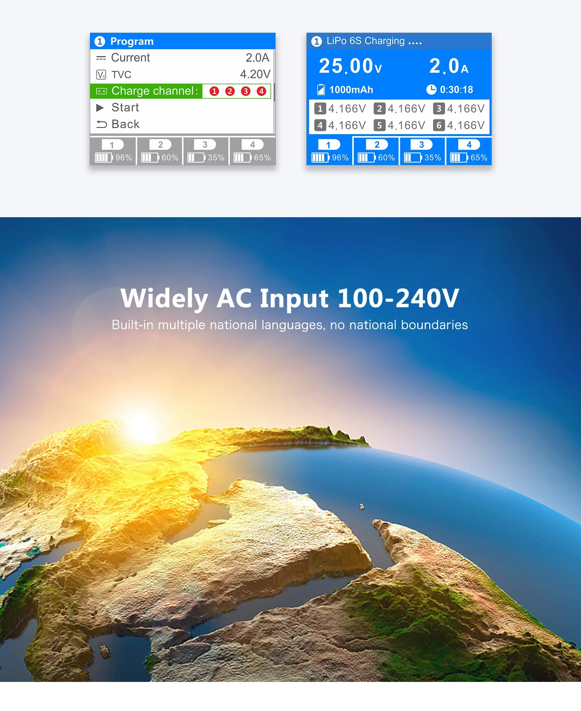 ULTRA POWER UP9 200W four-channel charger Model aircraft high power 2S-6S charger