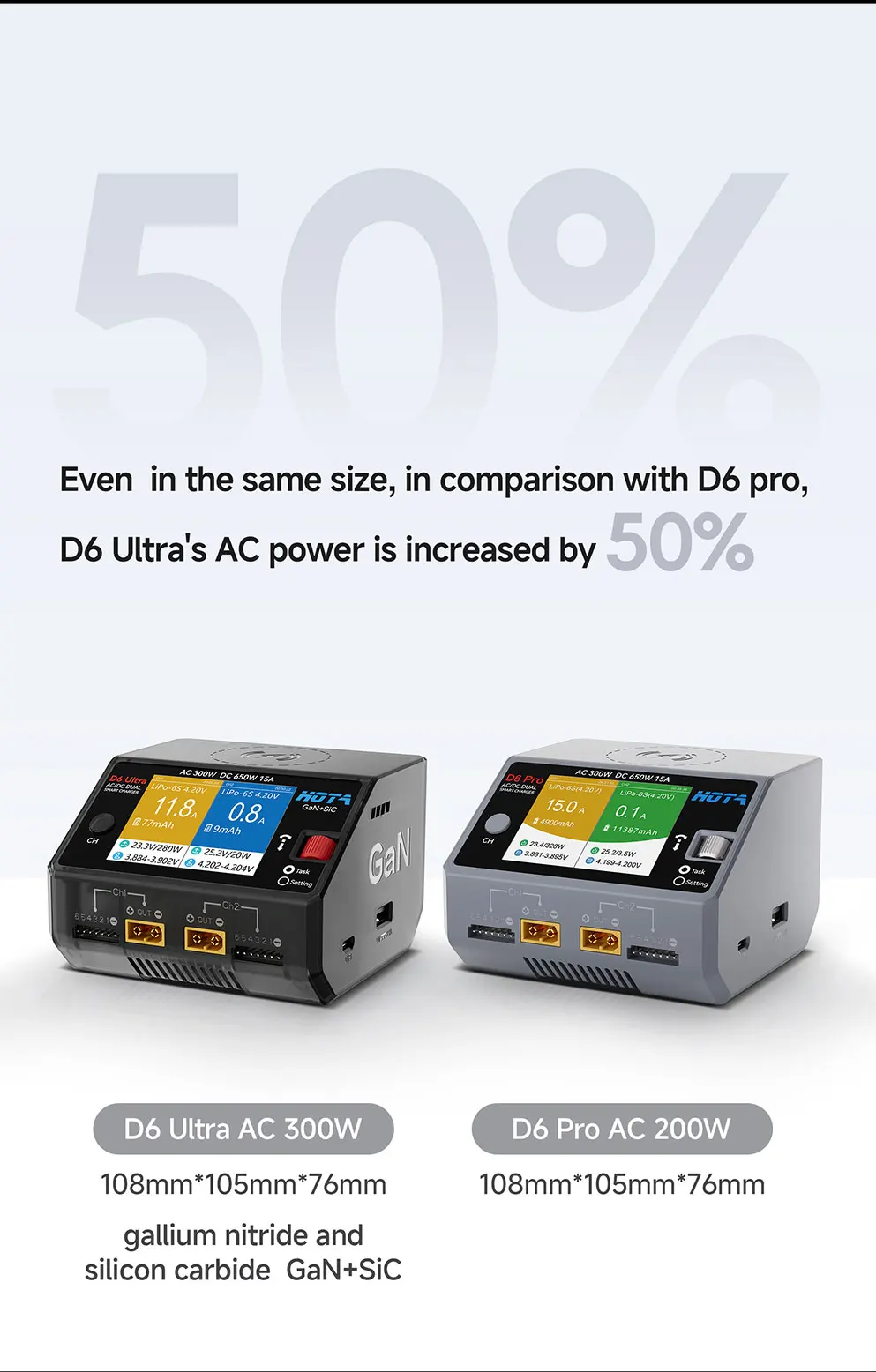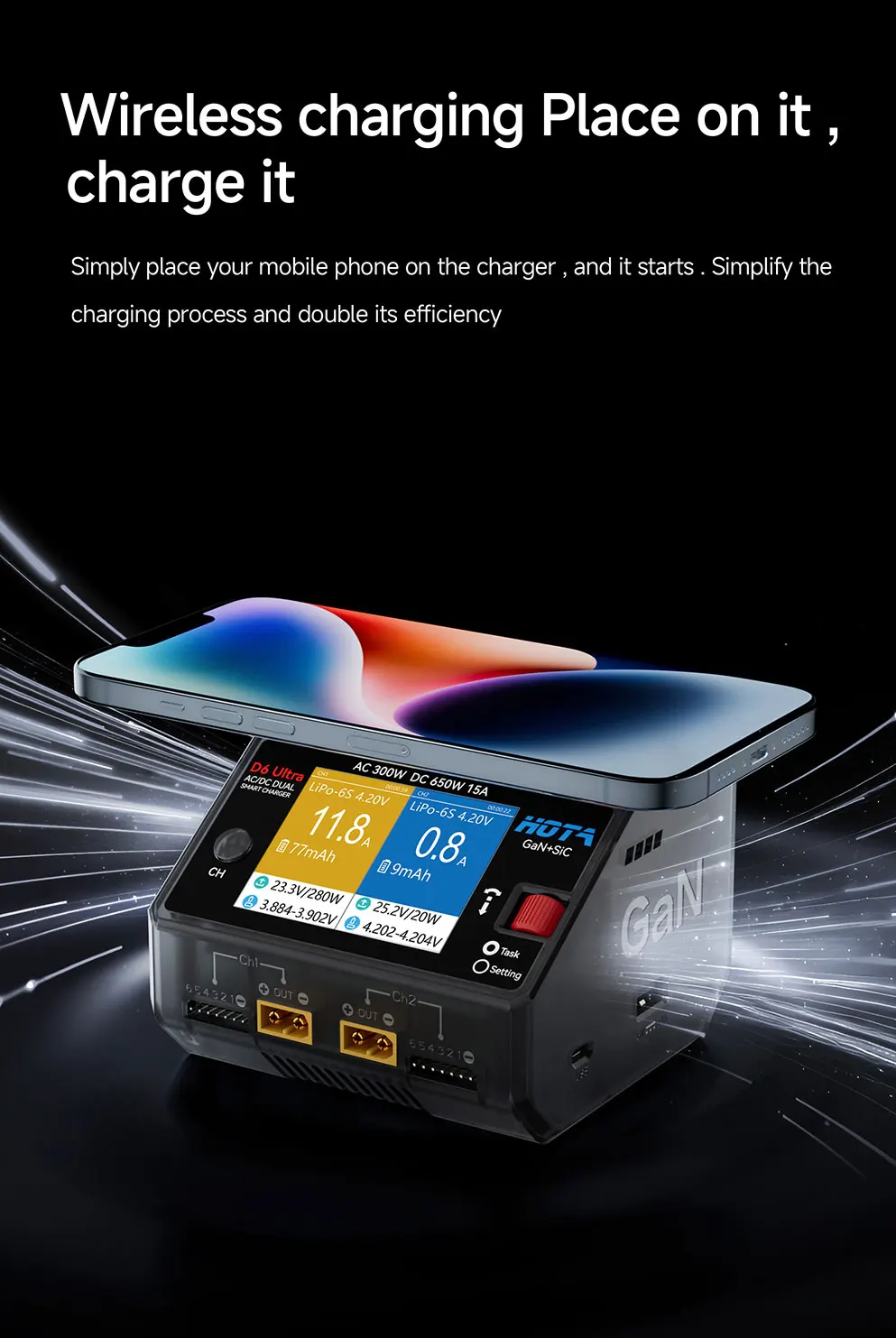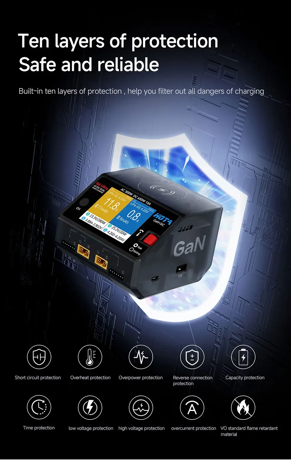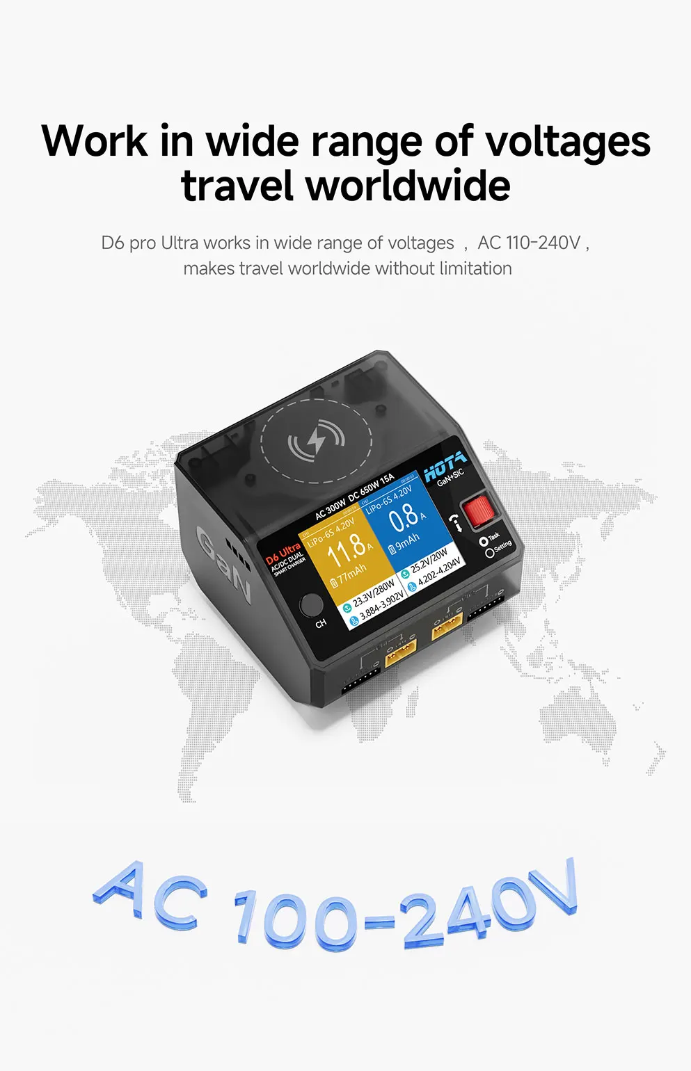 HOTA D6 Ultra GaN 650W AC/DC Dual Smart Charger